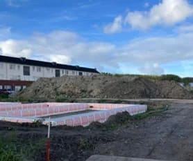 Er is nu echt begonnen met de bouw van de 16 woningen aan de Leidsemeerstraat. De eerste funderingen zijn gestort. - Verplaatsen oorlogsmonument