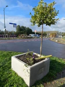 Bij het bedrijf BioBound (Cruquius) hebben we dankzij onze sponsor MeerWind een viertal bloembakken kunnen aanschaffen. Dit zijn circulaire producten, die dus meewerken aan het terugdringen van CO2.